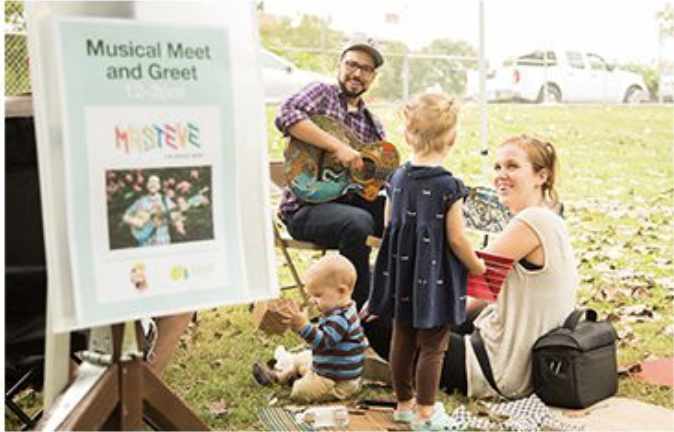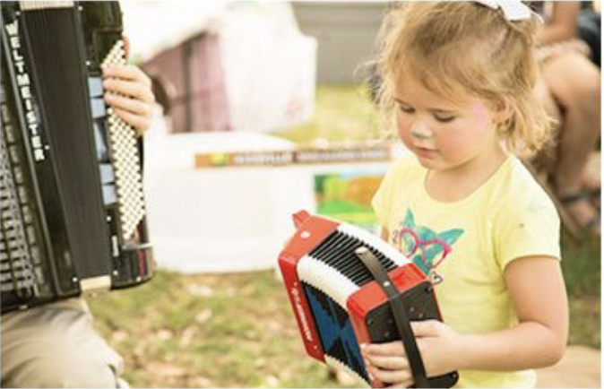 We have a Kid's Music Stage at Musicians Corner events as a play area focused on performance. We also have a Music Stage at our Kidsville Family Festival where we showcase both adult performers of children's music and youth performers as an opportunity to help develop performance skills.